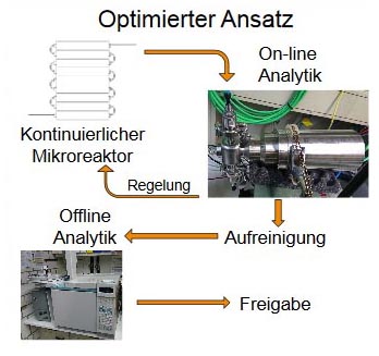 | Das Konzept, kritische Qualitätsparameter bei der Biodieselherstellung mit einem kontinuierlichen Mikroreaktor mittels NIR-Spektroskopie zu regeln, ist vielversprechend und soll auf seine Übertragbarkeit auf eine on-line Prozesssteuerung überprüft werden. |