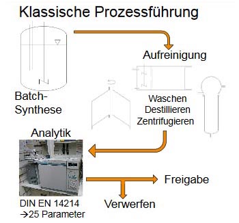 zwischen dem Lehr- und Forschungszentrum Process Analytics & Technologyder Hochschule Reutlingen und der FESTO AG & Co. KG Future Concepts Process Optimization wiird in diesem Zusammenhang ein Konzept erforscht, um am Beispiel des etablierten technischen Prozesses der Biodieselsynthese eine Regelungsstrategie zur Optimierung wichtiger Qualitätsparameter zu implementieren. |