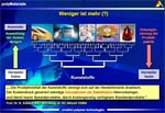 Drastisches Beispiel "Weniger ist mehr": Der Kunststoff ABS (Gehäuse, Spielzeuge) wird von 1500 Varianten auf nur noch 10 beschränkt, und weltweit in nur drei Analgen hergestellt werden.