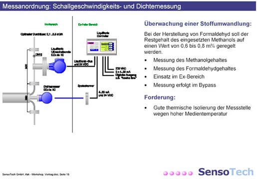 Es werden zwei Messverfahren eingesetzt: die Messung der Schallgeschwindigkeit und der Brechzahl. Durch die Kombination beider Verfahren und Verknüpfung
