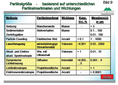 Eines der Probleme ist die Zuordnung und Definition einer Äquivalentkugel zu einem beliebig geformten Partikel un die Auswahl der adäquaten Messmethode.