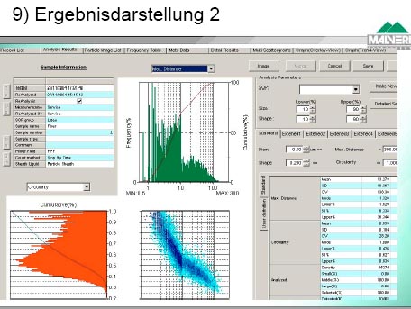 unterschiedliche Partikeldimensionen/parameter gemessen werden.