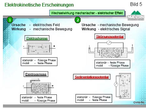 Aus den verschiedenen elektrokinetischen Erscheinungen wird hier die Elektrophorese verwendet.