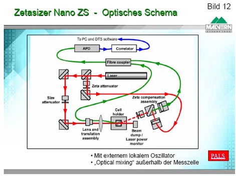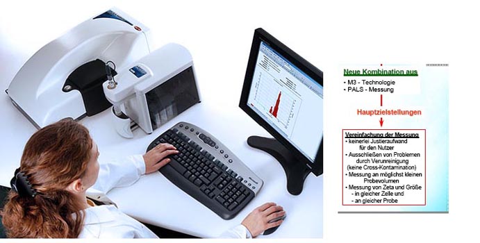 Dagegen kombiniert der Zetasizer Nano ZS die M3-Technik (mixed mode measurement) mit der Lasertechnologie PALS (phase analysis light scattering). Dies führt zu einer Reihe von entscheidenden Vorteilen wie