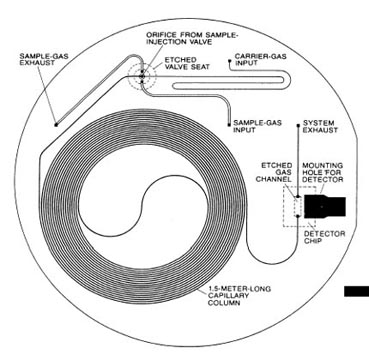 erhebliche Fortschritte gemacht. Hierbei werden die einzelnen Bauteile in Siliziumscheiben geätzt, das gesamte chromatographische System