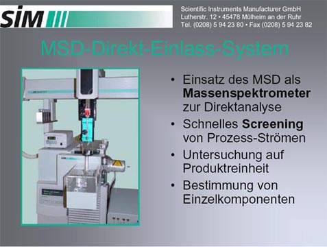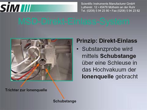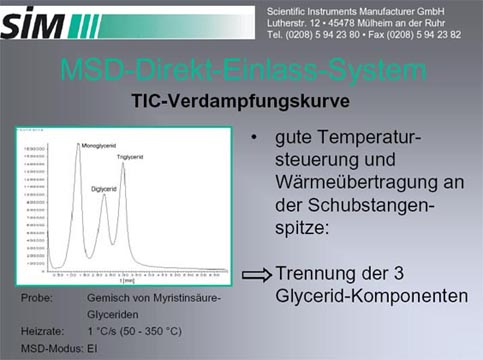So ermöglicht die Schubstangentechnik die direkte Einschleusung der Probe in das Hochvakuum eines Massenspektrometers (MSD). Die Leistungsfähigkeit zeigt sich in der Trennung