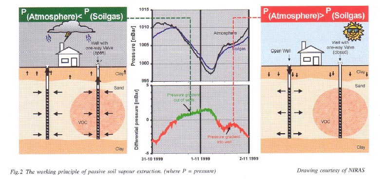 Die (passive) Entnahmetechnik für das Bodengas beruht auf den Schwankungen des Luftdrucks über der Messstelle. Bei niedrigem Luftdruck wird das Gas aus dem