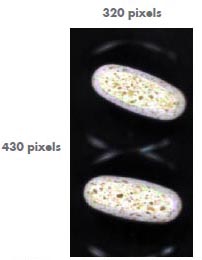 Die Zeile des Objektes wird mit einer Ortsauflösung von 320 Pixeln erfasst, die spektrale Auflösung beträgt 6 nm. Durch die speziell von Specim entwickelte Optik im Nahinfrarotbereich kann die Ortsauflösung bis in den Bereich von 30 µm gewählt werden, andererseits können bei Bedarf auch gleichzeitig mehrere Tabletten abgescannt werden.