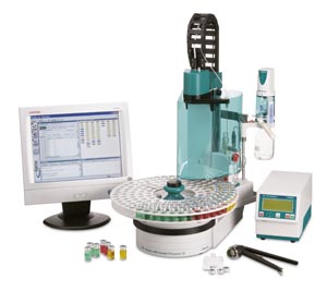 Der Anwender füllt dabei das zu untersuchende Lösemittel lediglich in ein Gefäß mit Septumdeckel ab und stellt es auf einen Probenteller. Das Aliquotieren der Probelösung erfolgt mit Hilfe der bewährten Dosinotechnik, die den Transfer frei wählbarer Volumina erlaubt und somit für einen hohen Arbeitsbereich des Verfahrens sorgt.