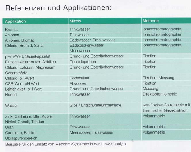 Flüssigkeitsanalytik Applikationen "Umwltanalytik"- Fa. Deutsche Metrohm Prozessanalytik