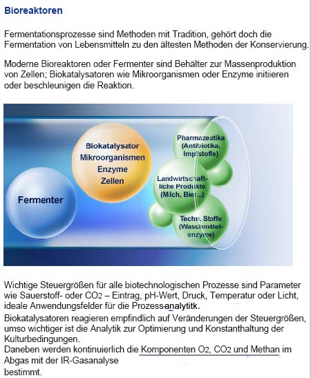 Gasanalytik - Applikationen - "Bioreaktoren" - Fa.Siemens |