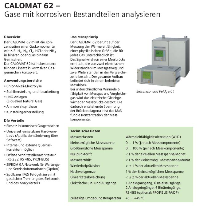 Das Gasanalysengerät CALOMAT 62 wird in erster Linie zur