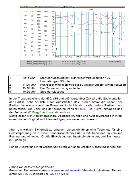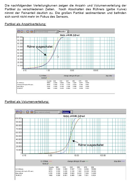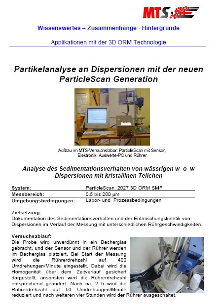 Partikelanalytik - Applikationen "Analyse des Sedimentationsverhalten von wässrigen Dispersionen" - Fa.MTS
