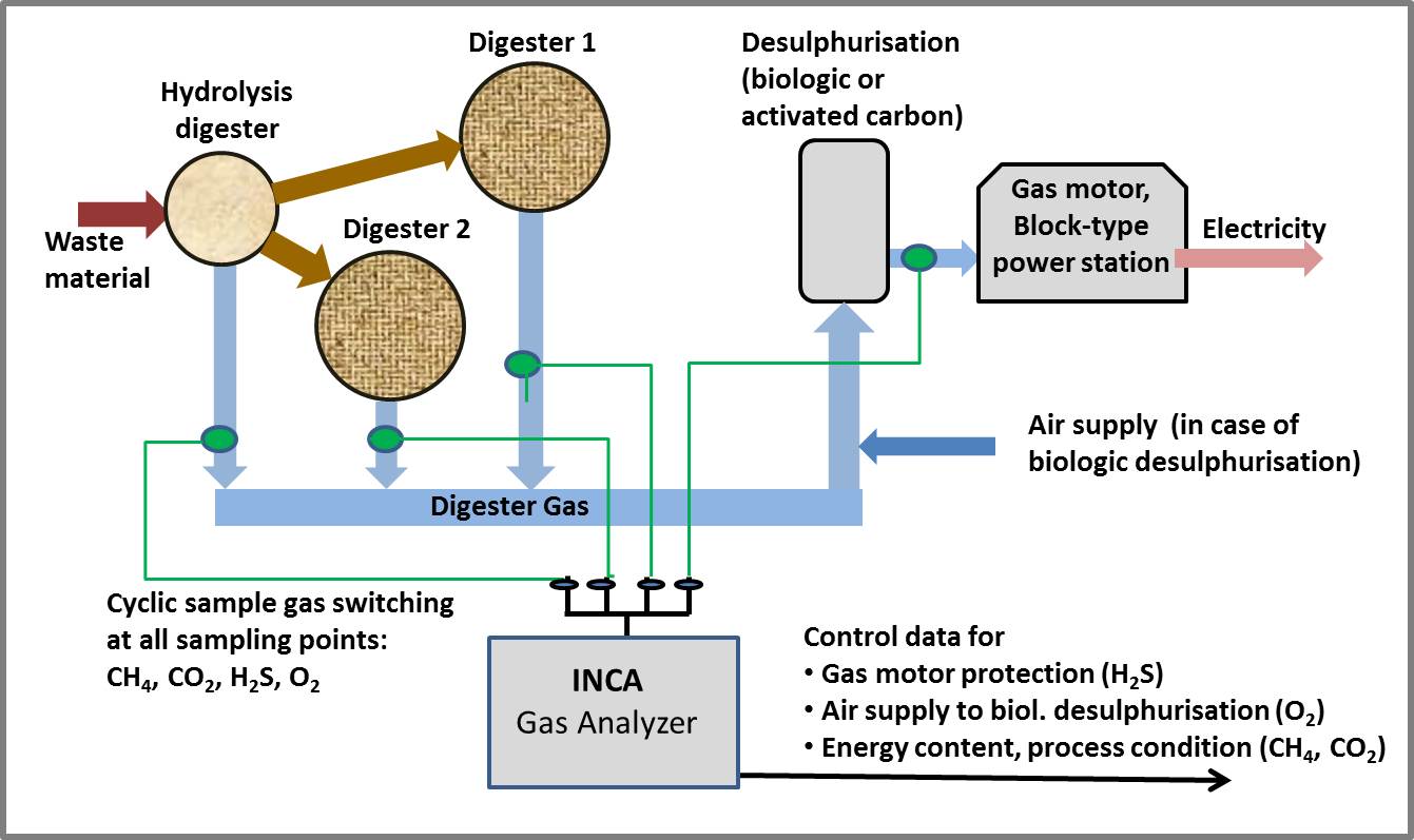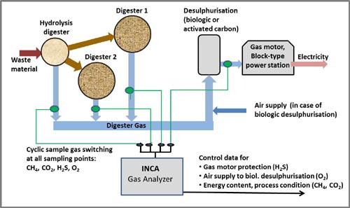 that can be flexibly configured with special orientation to analysis of natural gas as well as biogas and digester gas. It consists of modules for sample gas feed, sample gas conditioning, sensors (using different detection methods), control, and data processing, from which an analysis system tailored to the specific application is configured – for inside or outside installation or operation in hazardous areas.