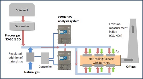 It is important that the measuring device reacts fast enough to ensure the control process, which requires special measures due to the size of the plant and the mixing of gases in the pipe system.