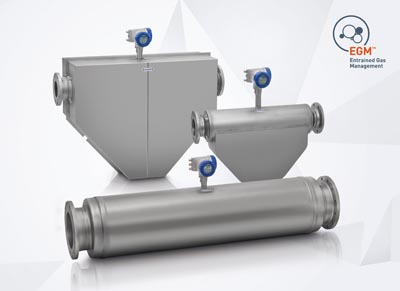 also feature Entrained Gas Management EGM, offering continuous and repeatable mass flow or density measurement over a wide range of gas fractions and complex flow conditions. The meters indicate and maintain operation with 2-phase flows such as liquids mixed with gas, slurries with gases or highly viscous fluids with gas entrainments. |