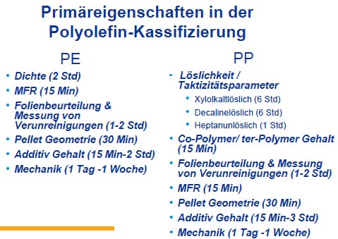 - von 1 Mio to/Jahr in 1968 auf 30 Mio to in 2000 - erhöht die Notwendigkeit der Online-Analysen für die Polyolefin-Klassifizierung.