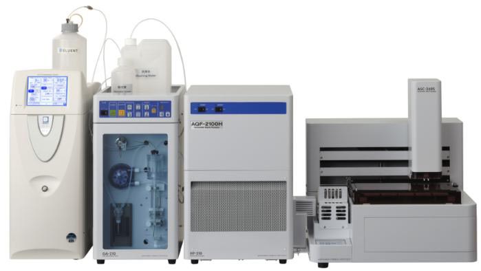 Mitsubishi AQF-2100H, einem Hochtemperatur-Aufschlusssystem, und einem Thermo Fisher Ionenchromatographen.