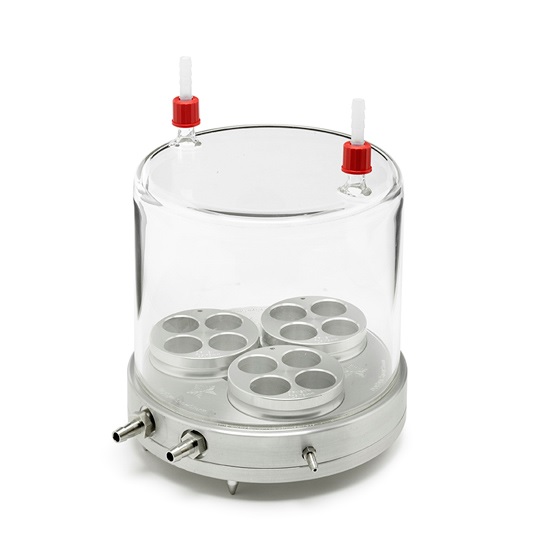 Die Verwendung einer beschwerten Silikondichtung verhindert die Bildung von Eis am Glas dieser Systeme. Für kleinere Experimente kann mit dem DrySyn Snowstorm Reaktor ein erhöhter Durchsatz erzielt und bis zu 27 Reaktionen gescreent werden. Das Spülen der Glocke mit Stickstoff / Argon verhindert bei niedrigen Temperaturen die Bildung von Eis um die Reaktionsgefäße.