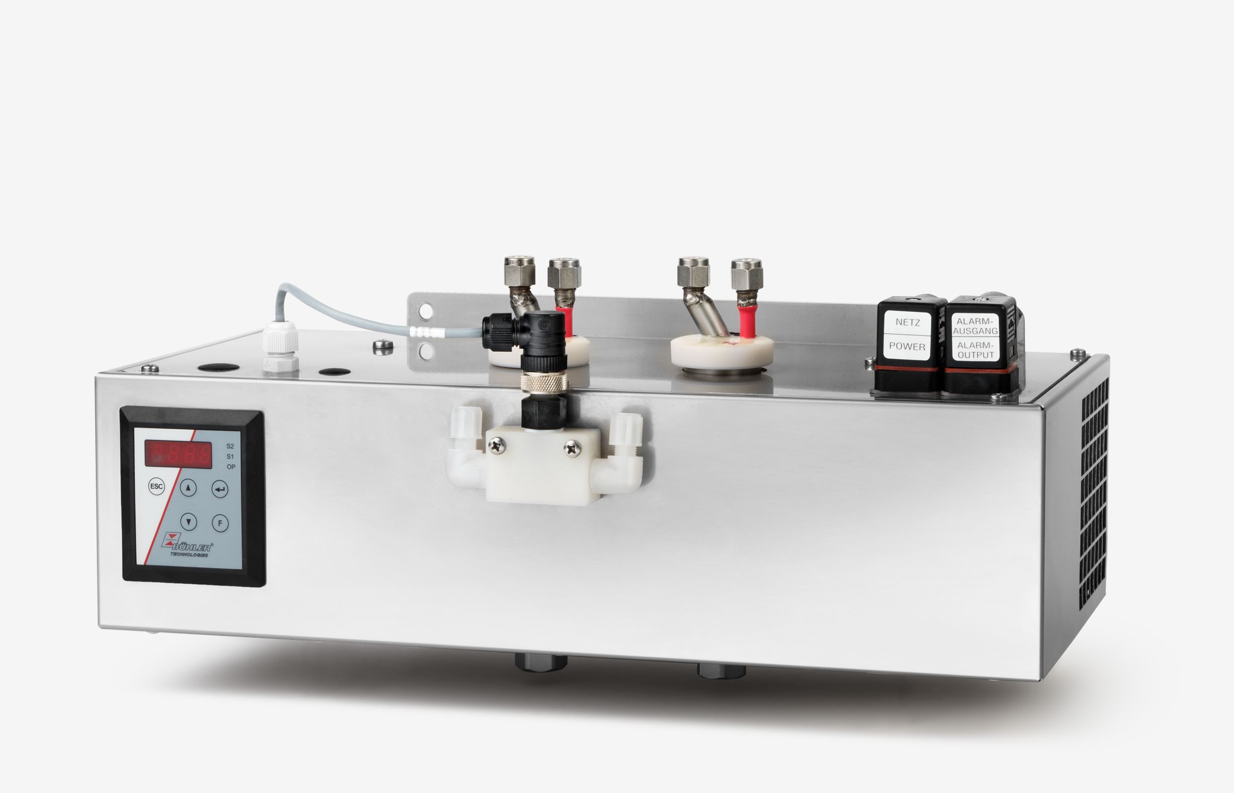 bietet Bühler Technologies nun Geräte für diese sensiblen Anwendungsbereiche. Diese Gaskühler basieren auf zwei gekoppelten aber thermisch voneinander unabhängigen Kühlblöcken. Jeder dieser Blöcke wird individuell gesteuert. In diesen Blöcken befinden sich einsteckbare Wärmetauscher mit besonderen Konstruktionsmerkmalen. Das Messgas wird kaskadierend durch die beiden Wärmetauscher geführt und so schonend getrocknet, dass nur noch eine nach EN 15267 Teil3 tolerierbare Auswaschung z.B. von SO2 stattfindet.