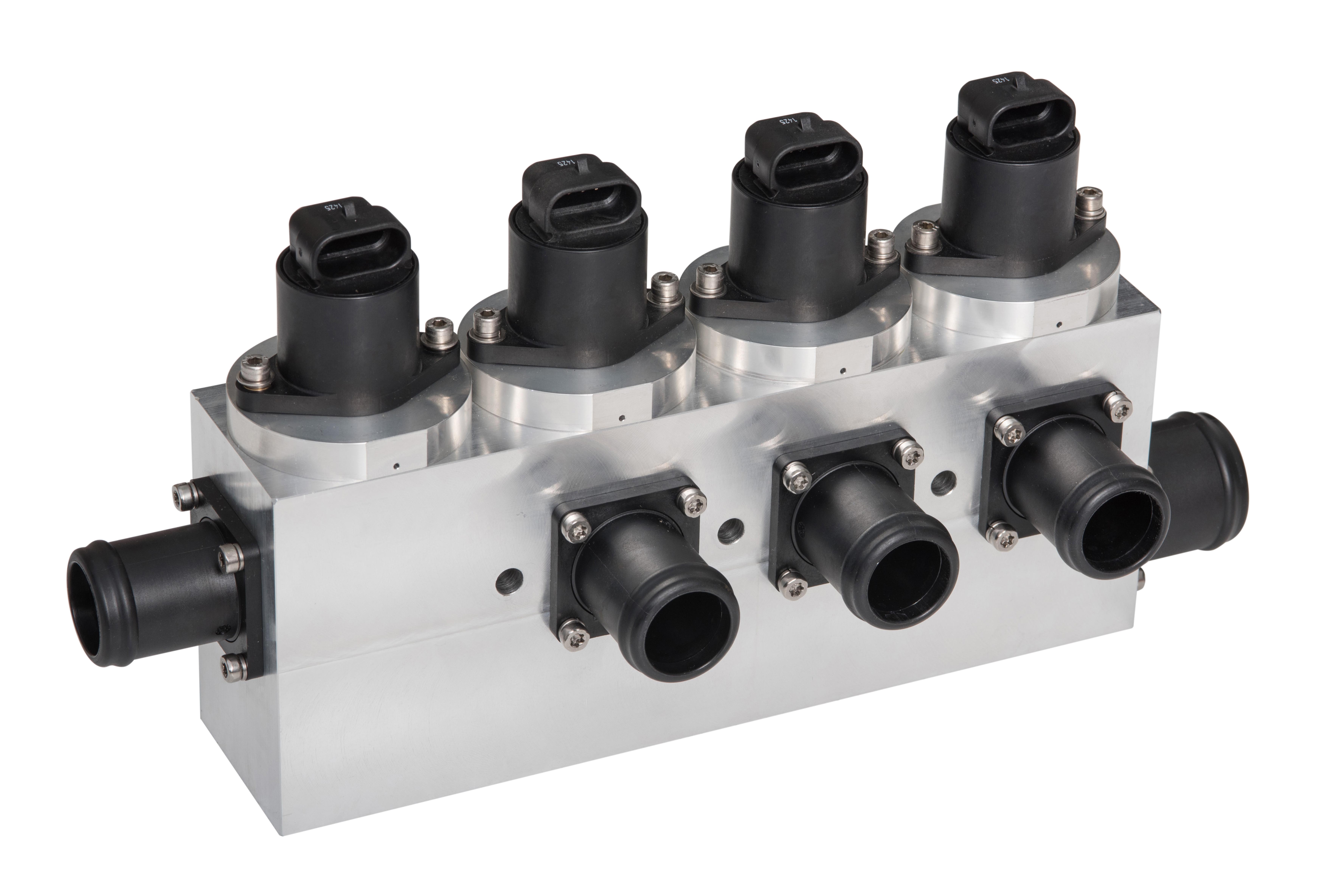 Der patentierte Matrix-Block wird in ein-, zwei- oder dreifachen Modulen mit verschiedenen Steuerfunktionen angeboten und vereint alle Ventilfunktionen für die kontinuierliche Regelung der Flüssigkeiten in temperaturgeführten Heizkreisen zentral und kompakt an einem Ort. Dadurch sind die Klimafunktionen des Fahrzeugs für die Wartung leicht zugänglich. Es werden ausschließlich hochwertige Bürkert-Komponenten verarbeitet, so dass der Matrix-Block eine lange Lebensdauer erreicht.