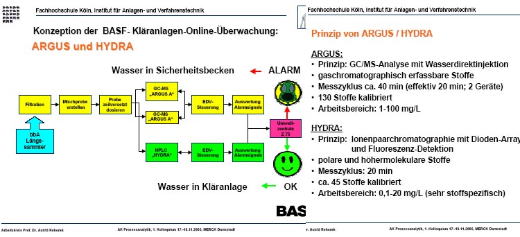 • ARGUS und HYDRA überwachen kontinuierlich den Zulauf der Kläranlage auf ca. 200 organische Einzelstoffeca