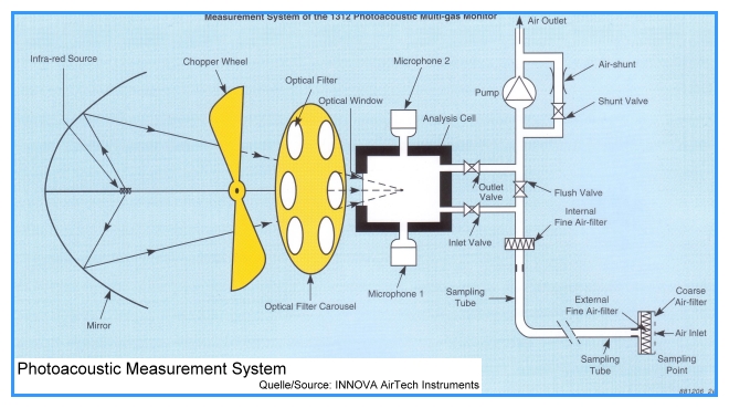 5. Zwei Mikrifone in der Wand der Messzelle messen dieses Signal, das direkt protional der Konzentration der Messgaskomponente ist.